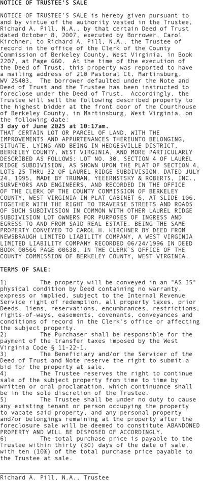 mailing address of 210 Pastoral Ct, Martinsburg, WV 25403. The borrower