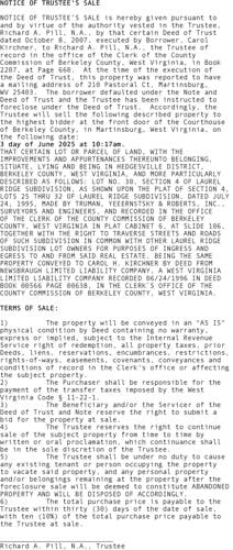 Commission of Berkeley County, West Virginia, in Book 2207, at Page 660. At the